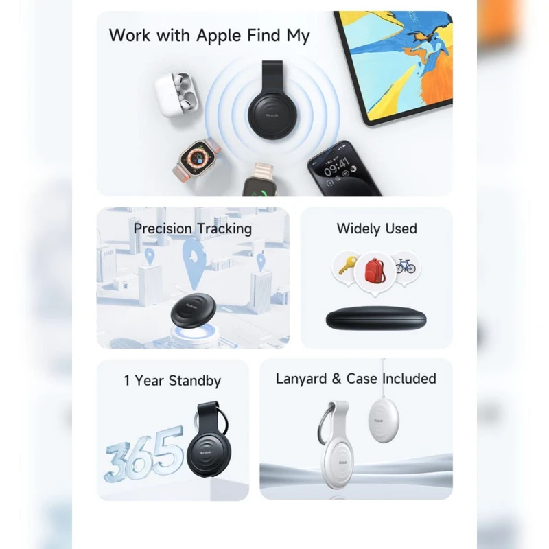 این تگ ضد سرقت به شما کمک می کند تا کلید، کیف پول، چمدان، حیوانات خانگی و موارد دیگر را پیدا کنید! این تگ ضد سرقت مکان دقیق را از طریق اتصال بلوتوث با تلفن شما فراهم می کند برای استفاده از این دستگاه نیازی به دانلود برنامه نیست، فقط کافی است با استفاده از برنامه Find My که قبلاً در دستگاه Apple شما نصب شده است، برچسب را متصل کنید. شبکه Apple "Find My" یک راه آسان و ایمن برای مکان یابی SmartTag فراهم می کند برای استفاده از این برنامه، مطمئن شوید که دستگاه خود را با آخرین نسخه iOS، iPadOS یا MacOS به روز کرده اید دارای زنگ هشدار خارج از محدوده است: اگر یک شی خارج از محدوده باشد، دستگاه به طور خودکار یک هشدار به تلفن شما ارسال می کند و به شما کمک می کند تا به سرعت وسایل خود را تشخیص دهید و از گم شدن آن جلوگیری کنید. برای کمک به یافتن سریعتر موارد گمشده، صدایی از طریق بلندگوی داخلی پخش میشود تا توجه شما را به محل دقیق آن جلب کند. استندبای تا 1 سال دوام می آورد و تعویض باتری بسیار آسان است